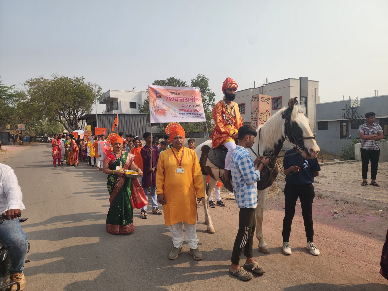 рдШреЛрдбреНрдпрд╛рд╡рд░ рдкреНрд░рддрд┐рдХрд╛рддреНрдордХ рд╢рд┐рд╡рд░рд╛рдп, рдорд╛рд╡рд│реНрдпрд╛рдВрдЪреНрдпрд╛ рд╡реЗрд╢рд╛рдд рд╡рд┐рджреНрдпрд╛рд░реНрдереА; рдмреЛрд▓реНрд╣реЗрдЧрд╛рд╡рд╛рдд рднрд╡реНрдп рдорд┐рд░рд╡рдгреВрдХ